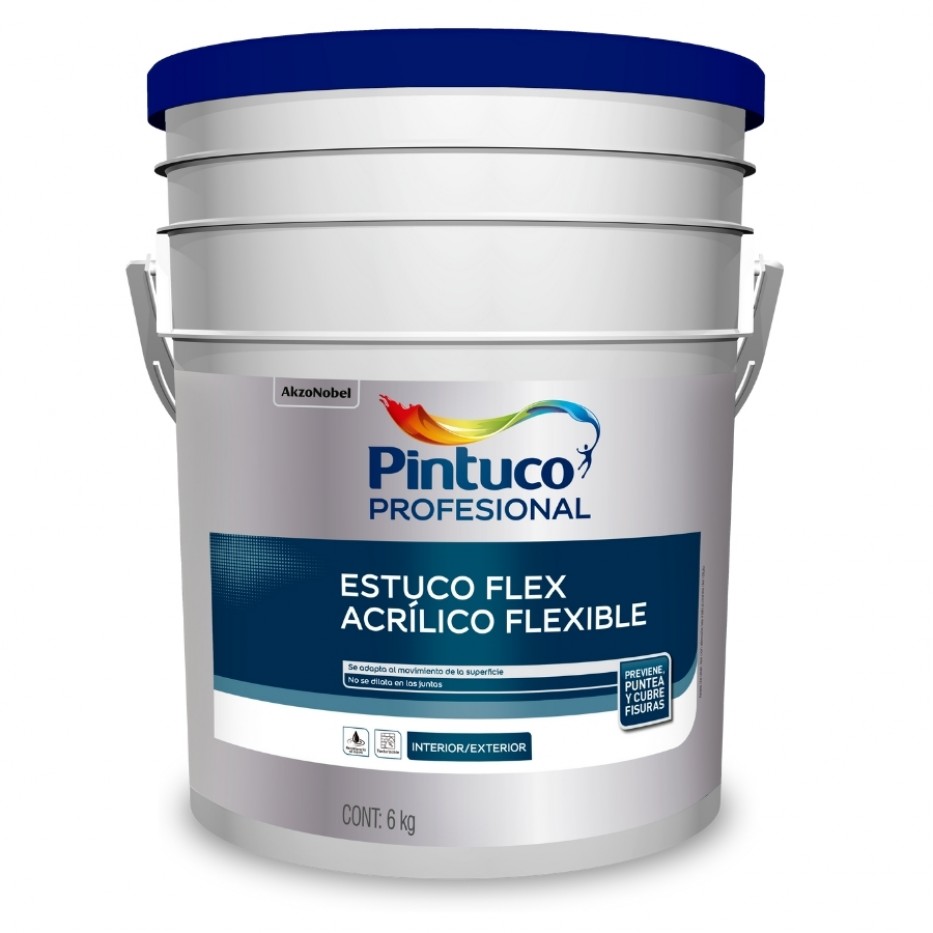 Estuco Profesional Flexible es una masilla flexible 100% acrílica, de alta elasticidad para juntas de fibrocemento y superficies fisuradas en ambientes interiores y exteriores, con máxima resistencia al agua y la intemperie, previniendo la aparición de fisuras y dilatación en la junta. Como estuco de acabado o pulido en superficies con fisuras de hasta 1 mm.