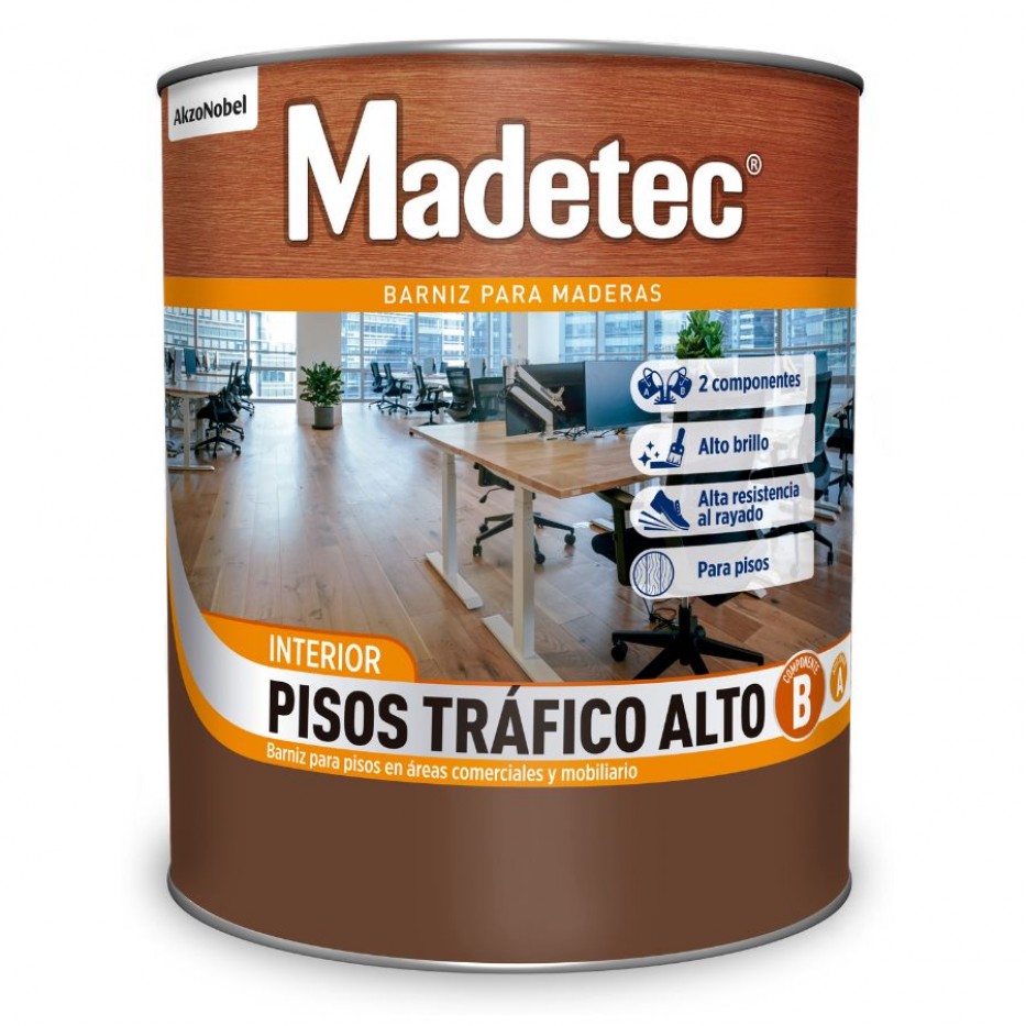 Componente B (Catalizador) para el barniz poliuretano de dos componentes Madetec Pisos Tráfico Alto, que proporciona al mezclarse con el componente A una película con excelente resistencia química y alta resistencia al rayado.